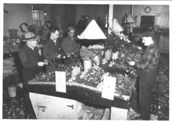 Roses were shipped across Canada at a time when there were no refrigerator cars. The flowers were individually wrapped in paper and boxed with ice to keep them fresh which allowed them to withstand a three-day trip to Edmonton. Mother’s Day was the biggest holiday and it would take every employee to be on hand to get the roses ready for transport. Often the companies would work together to fill large orders. By the 1930s Richmond Hill had attained its reputation as the Rose Capital of Canada.